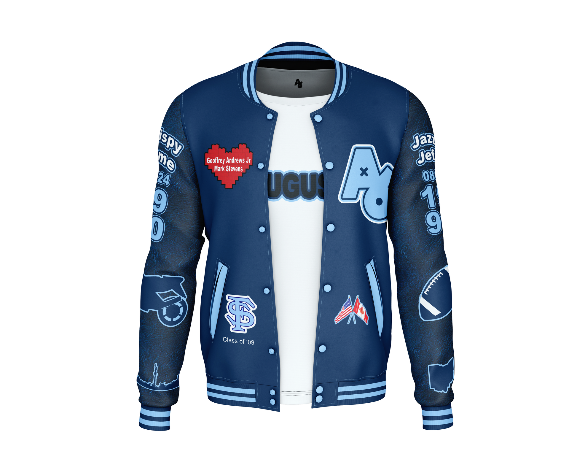 The Jazzy Jeff x Krispy Kreme A6 Varsity Jacket is a limited edition to honor and celebrate the lives of two best friends/brothers Geoffrey Andrews Jr and Mark Stevens. Each sleeve on jacket has a set of chenille patches dedicated both Jeff and Mark.